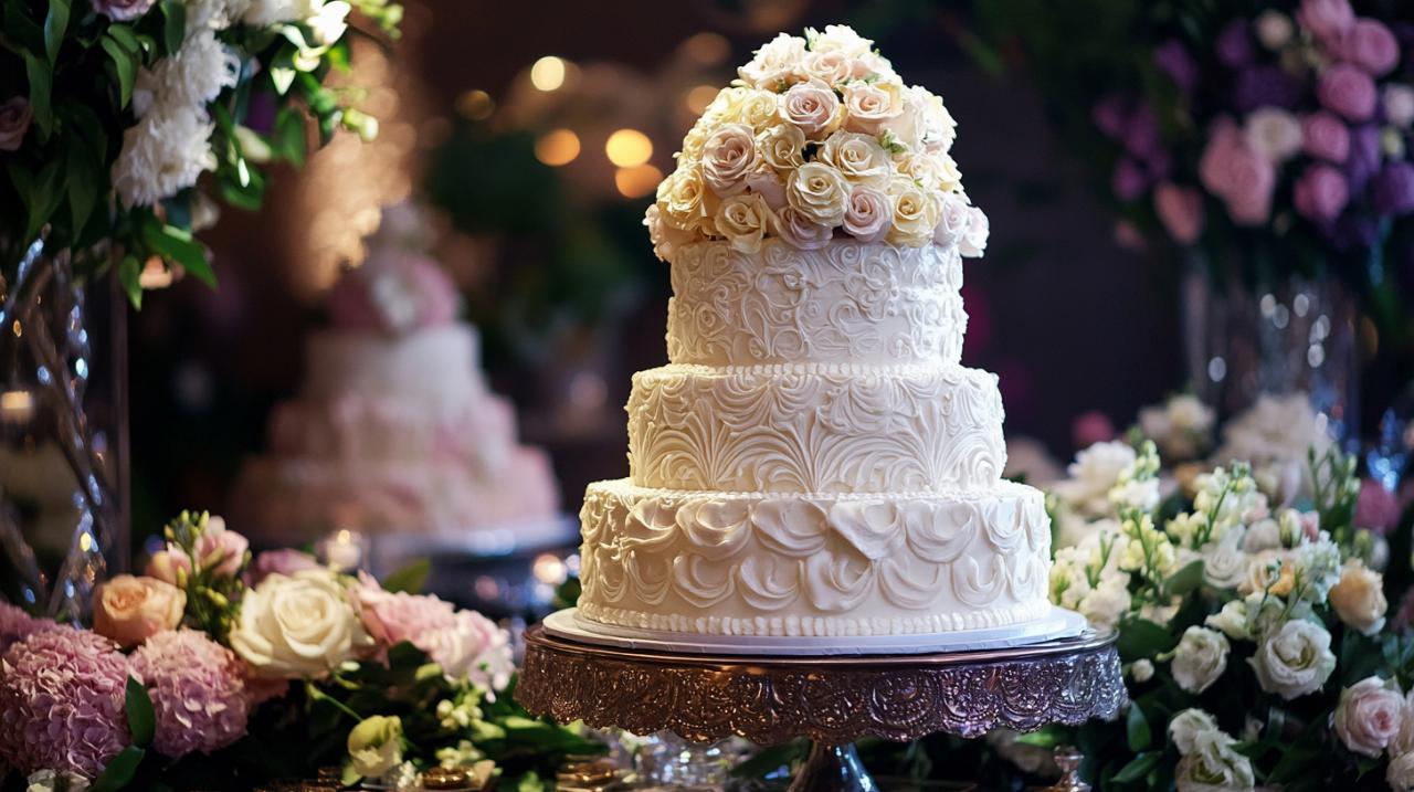 Le glaçage au beurre représente l'élément unificateur de votre pièce montée. Avec environ deux kilos et demi de glaçage nécessaires pour un wedding cake de taille standard, cette crème onctueuse permet non seulement de masquer les imperfections de la génoise, mais aussi de créer une surface lisse et élégante. Le glaçage crémeux blanc constitue une base neutre idéale qui s'adapte à tous les thèmes de mariage et met en valeur les décorations florales comme le gypsophile, cette délicate fleur blanche qui apporte une touche champêtre et romantique.